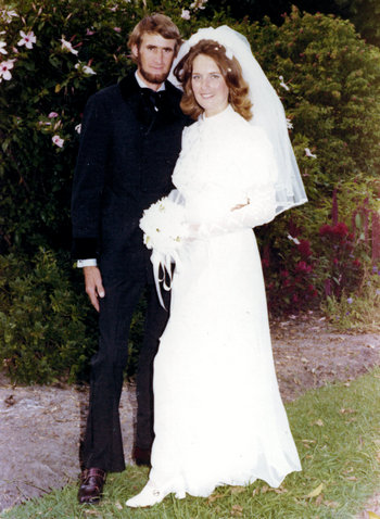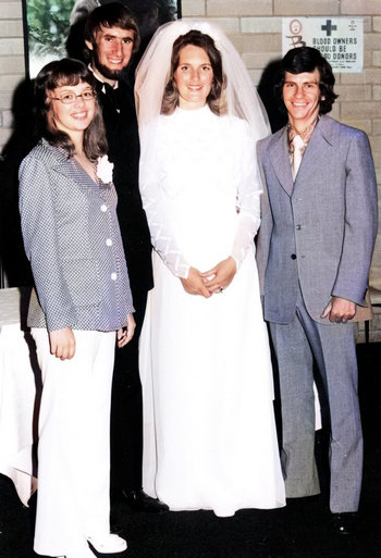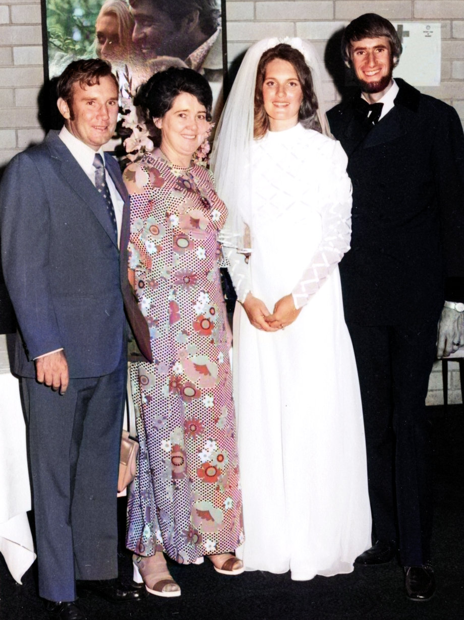 We were married 6 months after getting engaged. The ceremony was held at the church, Bedford Gospel Chapel near Morley, Western Australia. It was on a stinking hot February day, with the temperature around 39 degrees C (103 degrees F) in Bedford!