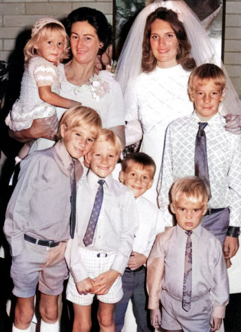 With my only neice, Trina, my mum Irene, Ann, and my nephews (L-R) Peter, Paul, Doug, Steven and David, at the front.