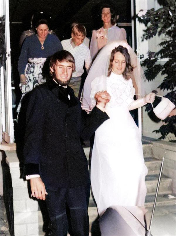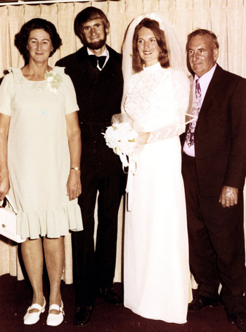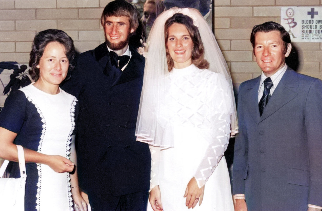 We were married 6 months after getting engaged. The ceremony was held at the church, Bedford Gospel Chapel near Morley, Western Australia. It was on a stinking hot February day, with the temperature around 39 degrees C (103 degrees F) in Bedford!