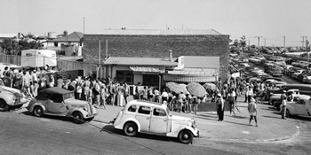 If you remember milk bars, FJ Holdens, bodgies, widgies, Six O'clock Rock or the Scarborough Snake Pit, then you will enjoy these old historic photos of the Scaborough Snakepit and beach. These black and white old history photos bring back the memories. All these old images where taken off the internet and are subject to copyrighted by them - click the link below the photo for the source. My thanks to the State Library of Western Australia for their assistance with references concerning the Scarborough Snake Pit.