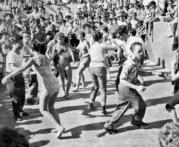 Kids danced, got hot, swam, cooled off, and danced again. Everyone stopped to watch the really cool dancers. You'd hear "Let's go have a look. So-and-so's going to dance now. He's a really good dancer" and everyone would traipse off. Source: History of Rock'n'Roll in Western Australia