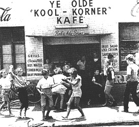 Teenagers had began dancing on the pavement outside a milkbar called, "Ye Olde 'Kool-Korner' Kafe", near "Dynamite's Shack". Big Don, an American submariner, a big guy built like a bouncer, came up with the idea of setting up a hamburger joint with milkshakes and a jukebox on the concrete terrace. He had the whole corner opposite the Scarborough Hotel. This area became known as The Snake Pit.