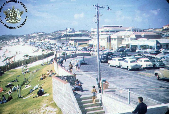 Looking north over the car park on Scarborough Beach Esplanade in 1958. Source: City of Stirling Local Studies Library